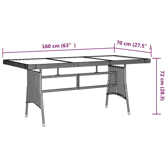 - Afmetingen tafel: 160 x 70 x 72 cm (B x D x H)