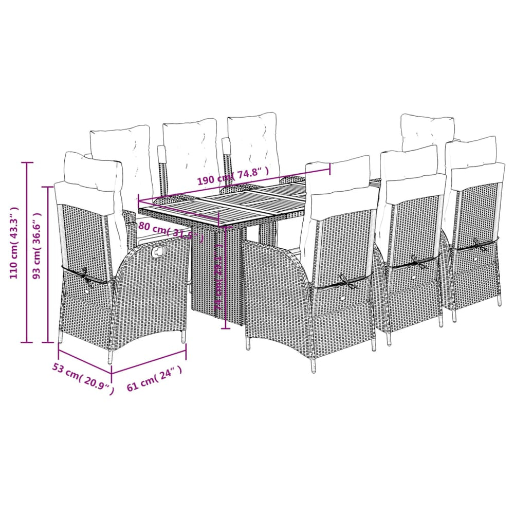 - Materiaal: PE-rattan, gepoedercoat staal en massief acaciahout met olieafwerking