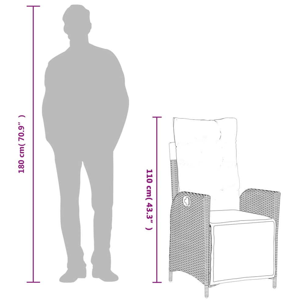 - Verstelbare rugleuning en voetensteun: dit tuinmeubel heeft aan de rechterkant een hendel. Door aan de hendel te trekken, kun je de rugleuning en voetensteun in elke gewenste positie verstellen en snel weer terugzetten in de oorspronkelijke positie.