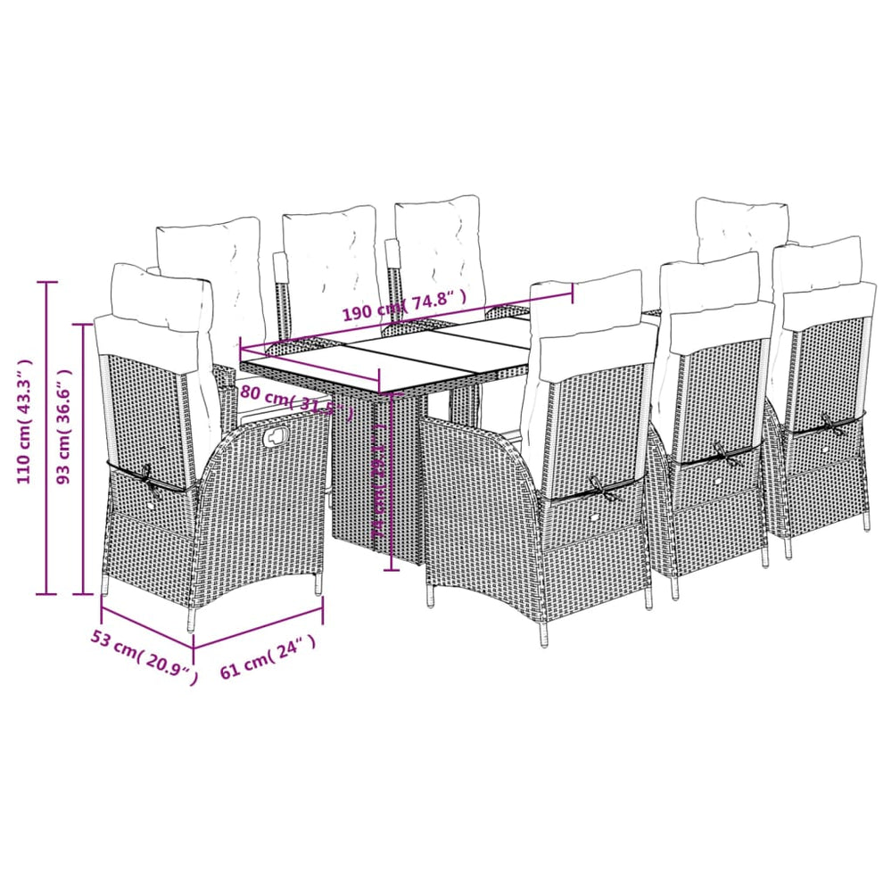 - Materiaal: PE-rattan, gepoedercoat staal en gehard glas