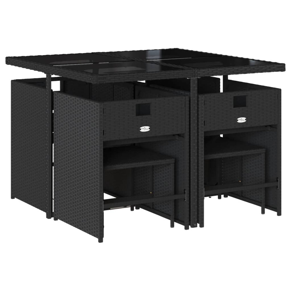 - Materiaal: PE-rattan, gepoedercoat staal en gehard glas