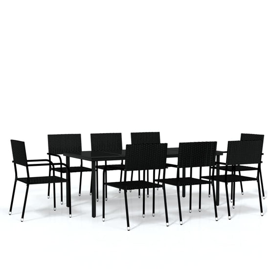 De praktische buiteneetset heeft een stalen frame waardoor hij sterk en stevig is. De tuinstoelen zijn gemaakt van waterbestendig en onderhoudsvrij PE-rattan, waardoor ze perfect zijn voor buitengebruik. Deze tuinstoelen zijn lichtgewicht en kunnen gestapeld worden om ruimte te besparen wanneer ze niet gebruikt worden. Het gladde, glazen tafelblad is gemakkelijk schoon te maken met een vochtige doek en is perfect voor het plaatsen van maaltijden, drankjes en decoratieve objecten.