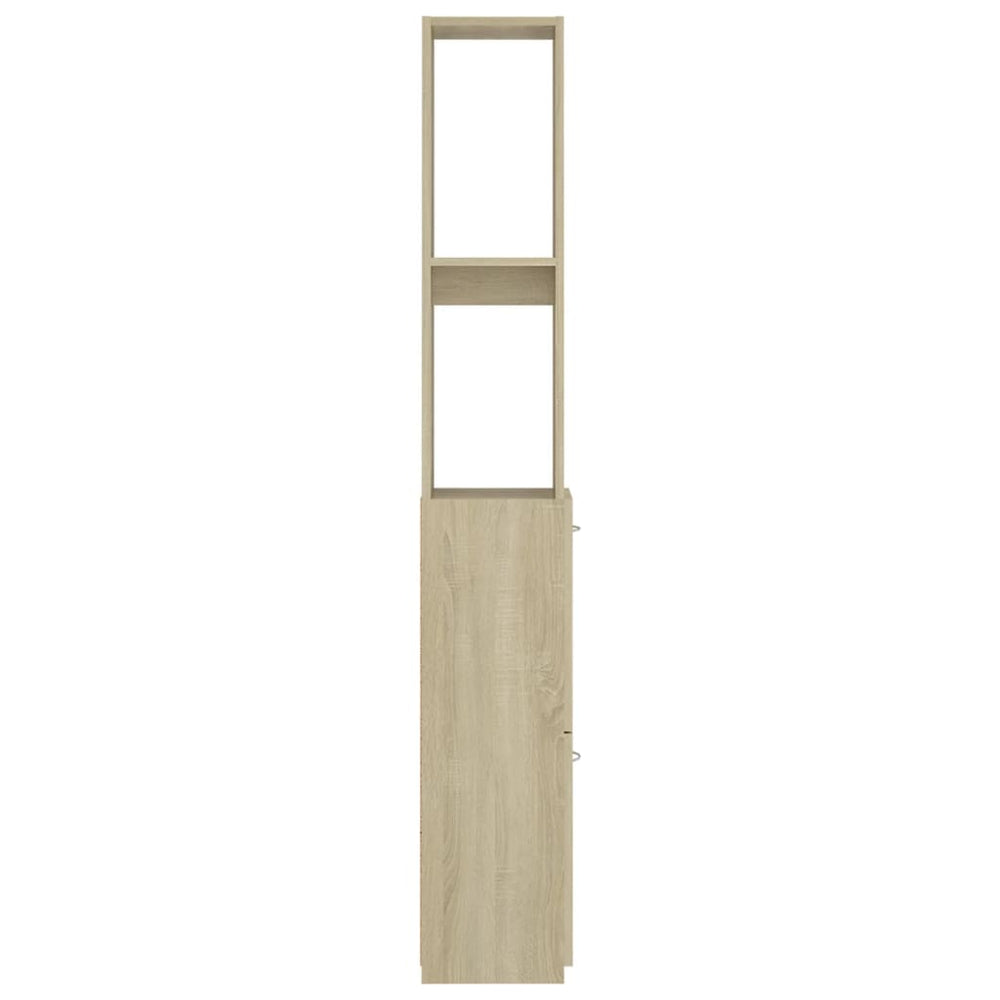 De kast is gemaakt van spaanplaat, dat robuust, duurzaam en gemakkelijk schoon te maken is. Door de strakke lijnen en het strakke ontwerp past hij perfect in je badkamer. De kast biedt veel opbergruimte, zodat je verschillende spullen eenvoudig kunt ordenen en je badkamer netjes en schoon kunt houden.