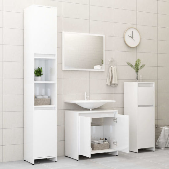 Met deze stijlvolle badkamermeubelset kan je extra opbergruimte in je badkamer creëren. Door de strakke lijnen en het strakke ontwerp past hij perfect in je badkamer.