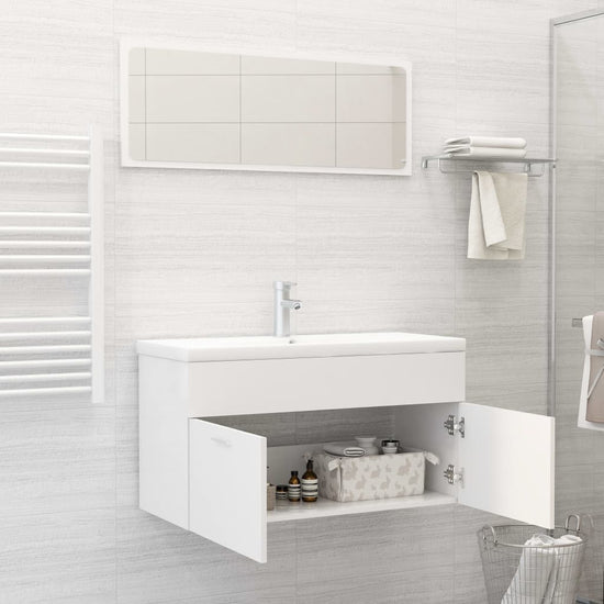 Deze trendy badkamermeubelset, bestaande uit een wastafelkast, een inbouwwastafel en een spiegel, past perfect bij je badkamer of wasruimte. Hij heeft een opvallende, opgeruimde uitstraling.