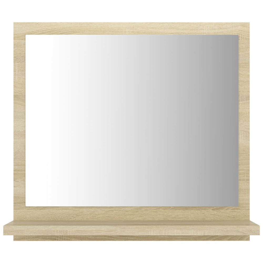 De wandspiegel is gemaakt van spaanplaat en acryl, waardoor hij duurzaam en stabiel is. Hij heeft 1 klein schap dat voldoende ruimte biedt om toiletartikelen, zoals zeep, shampoo en tandpasta, op te bergen. Bovendien is de spiegel gemakkelijk schoon te maken met een vochtige doek.