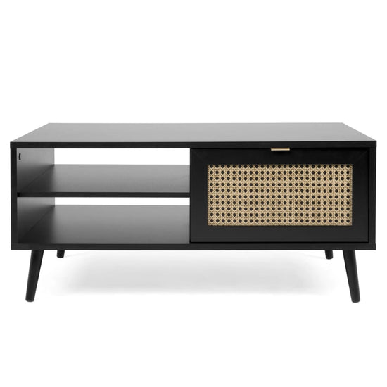 Dankzij de etnische stijl, donkere kleur en mooie, gladde rattanprint op de spaanplaat is de kast een opvallende toevoeging aan elke kamerinrichting. De Vienna banktafel met 1 deur en 2 open opbergvakken biedt veel opbergruimte. Deze stabiele Finori woonkamertafel is eenvoudig te monteren en heeft dankzij de massief houten poten een mooie uitstraling.