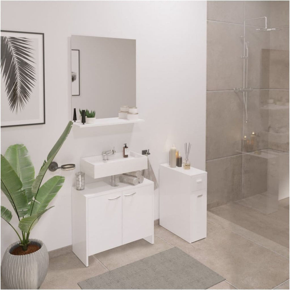 De moderne, hoge en smalle FMD ladekast is een aanvulling op je keuken of badkamer.