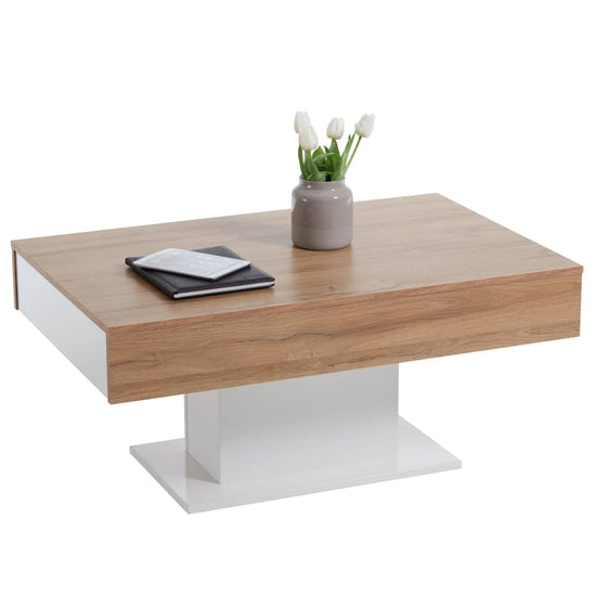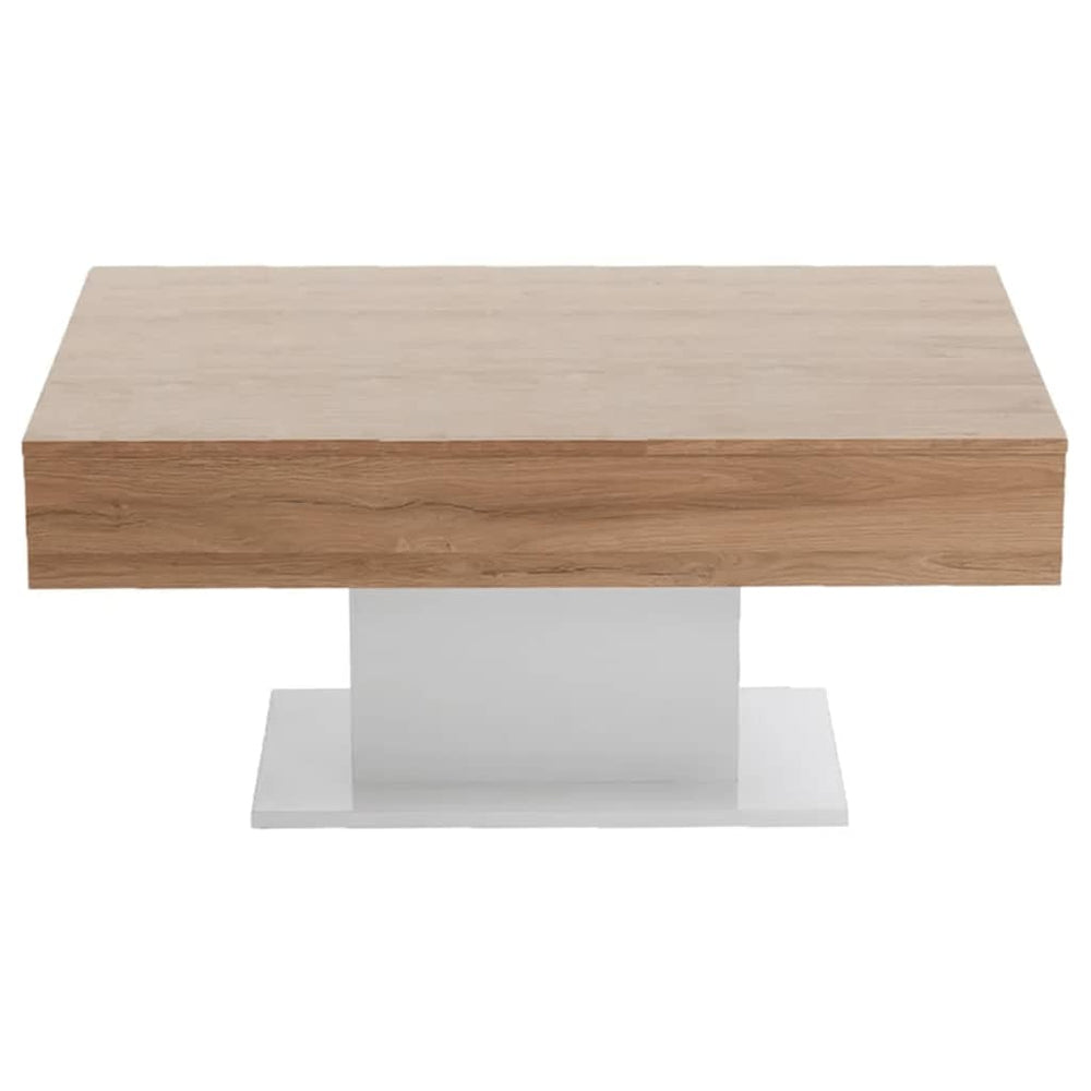 Deze woonkamertafel is gemaakt van duurzaam, met melamine bedekt spaanplaat en heeft een verfijnde antiek-eikenkleur met witte elementen die bij elke interieurstijl past.