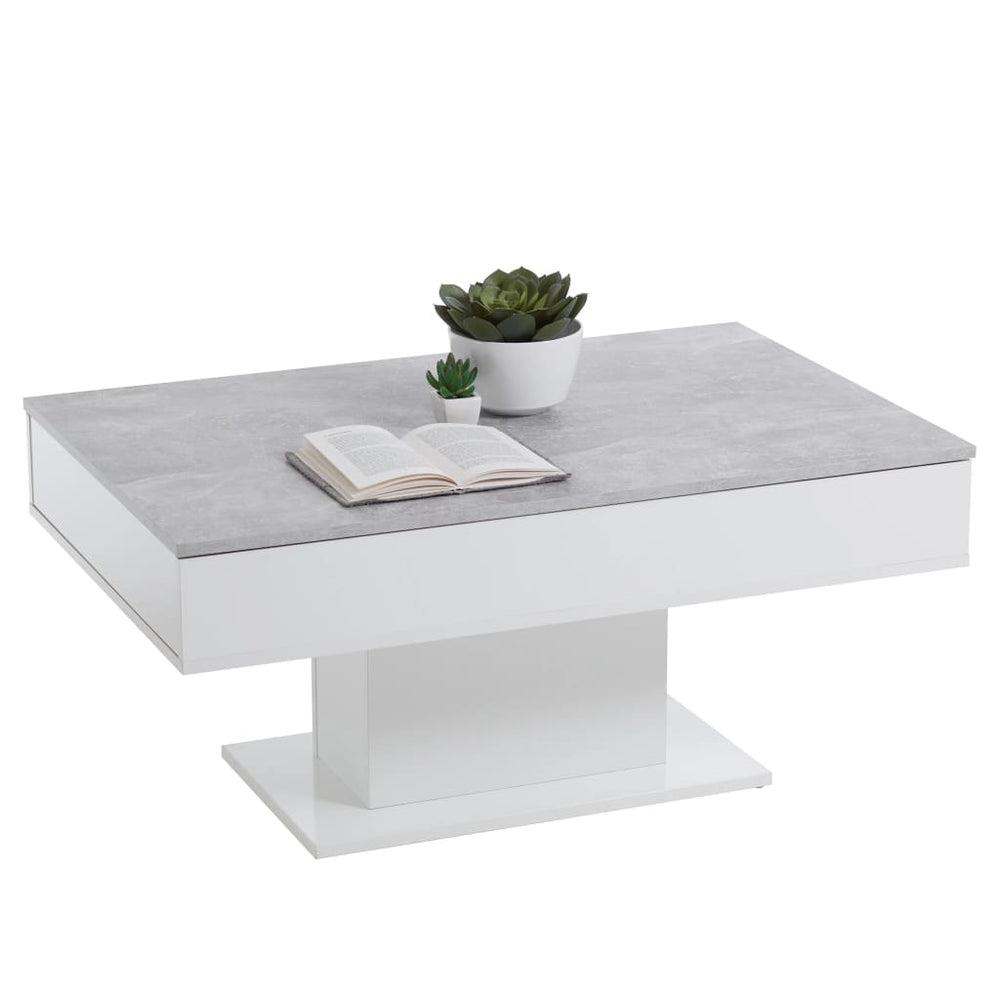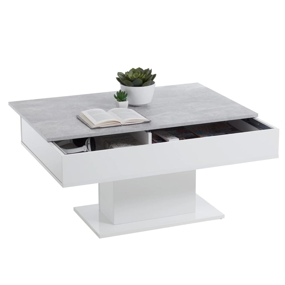 Deze woonkamertafel is gemaakt van duurzaam, met melamine bedekt spaanplaat en heeft een verfijnde betongrijze kleur met witte elementen die bij elke interieurstijl past.