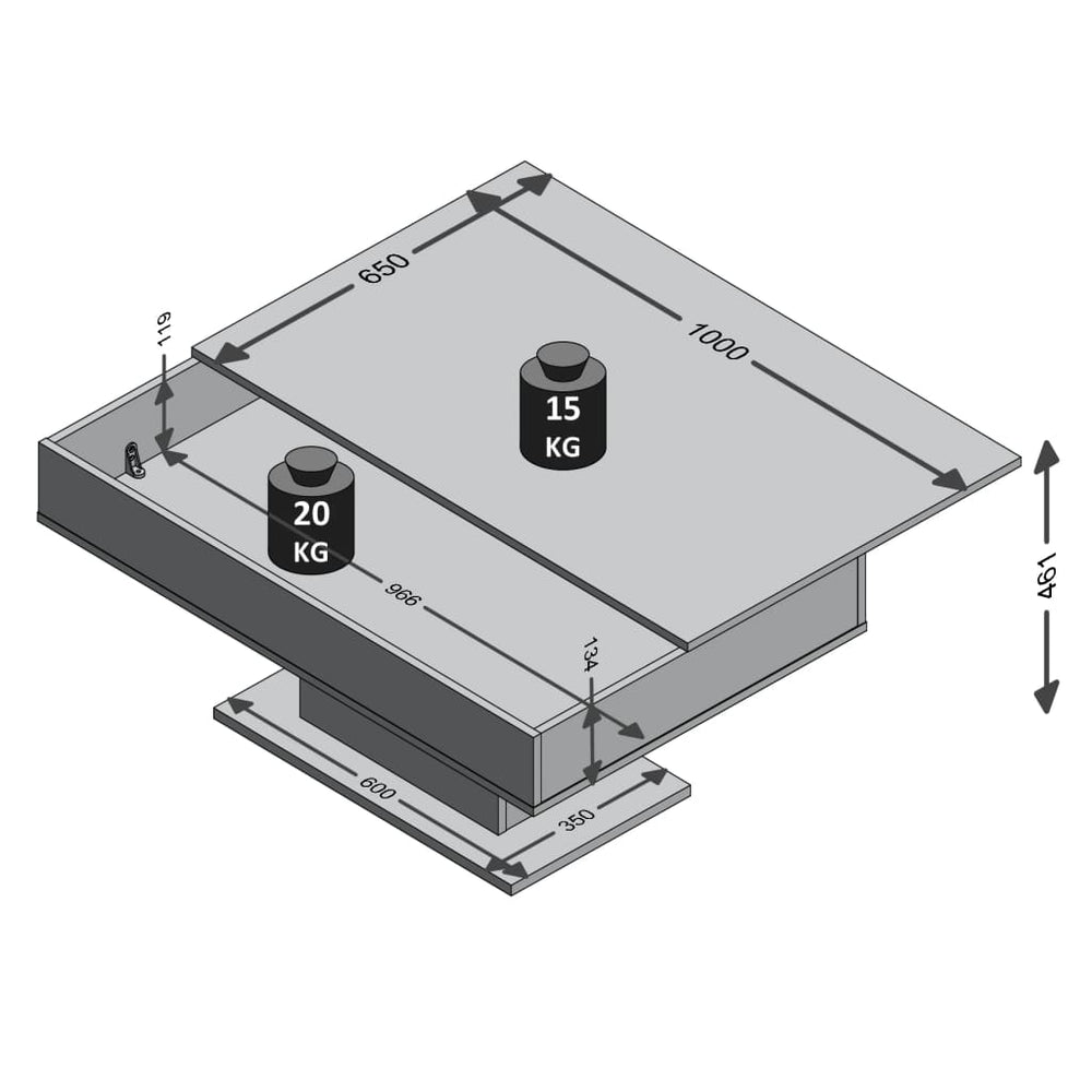 Hij heeft een slank ontwerp met een groot opbergvak onder het tafelblad dat kan worden gebruikt om spullen, zoals tijdschriften, boeken en afstandsbedieningen, binnen handbereik te houden.