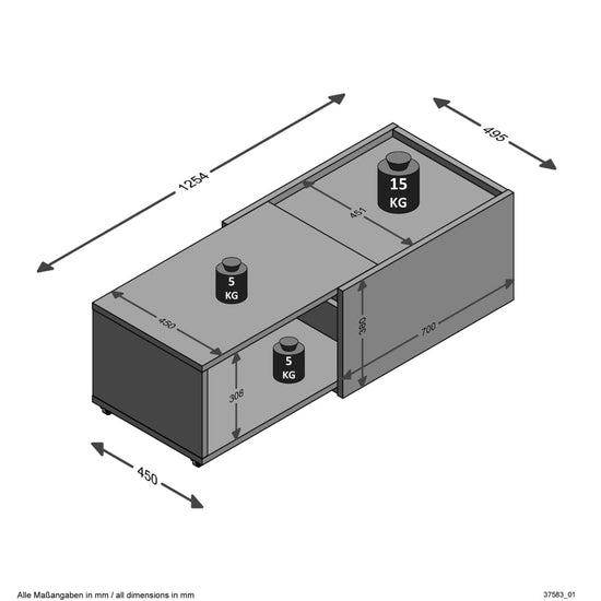 - Afmetingen (uitgeklapt): 125,4 x 49,5 x 38 cm (B x D x H)