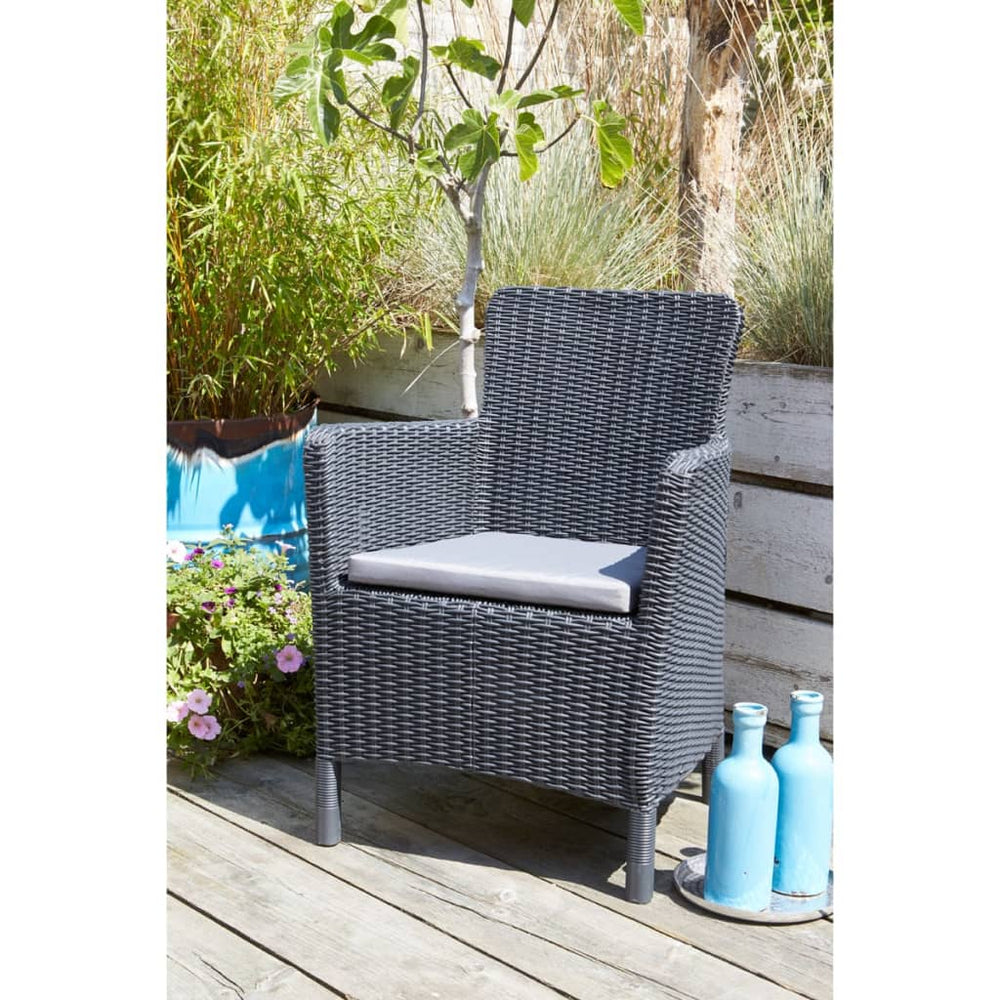 De Trenton eetstoel van Keter is een praktische en decoratieve toevoeging aan je tuin, balkon of terras. Dankzij het moderne design past de tuinstoel bij elke tuinset of tuintafel.