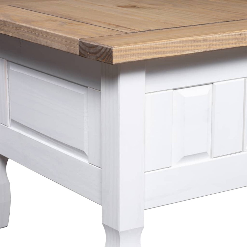 Deze hoogwaardige houten salontafel is een meubel in de Mexicaanse Corona-stijl. Het gewaxte grenenhout ademt een rustieke Mexicaanse charme uit die de tafel een geweldige aanvulling op je woon- of zitkamer maakt.