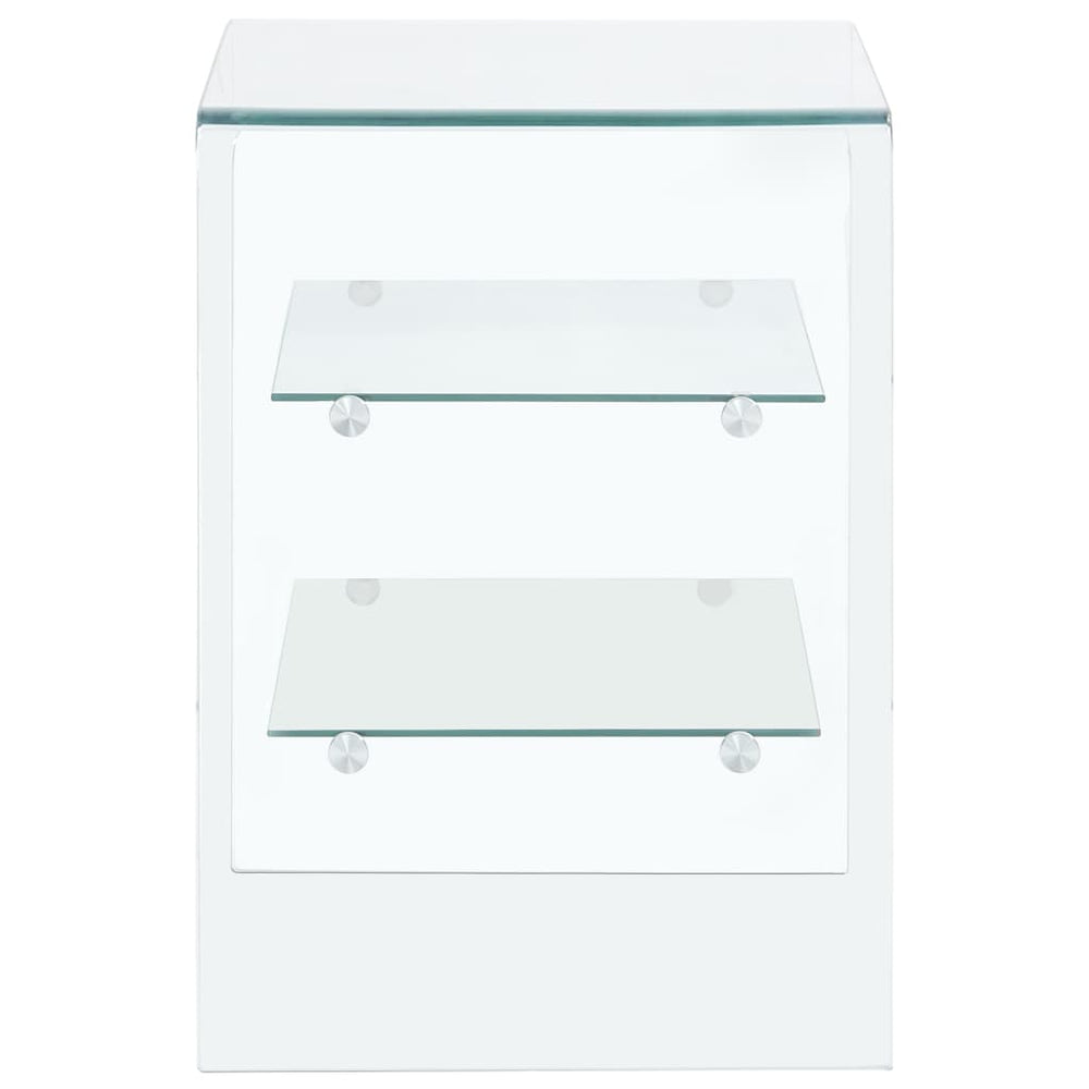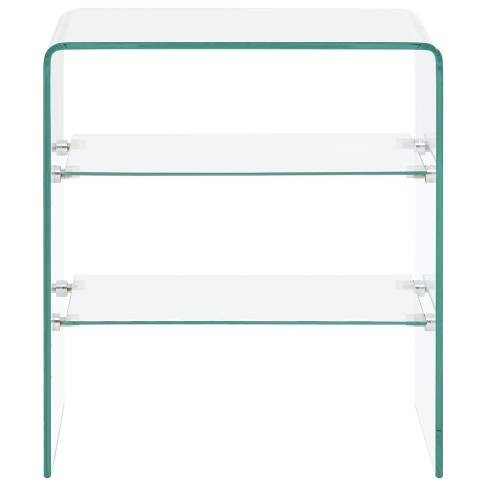 De salontafel is gemaakt van gehard veiligheidsglas, wat veiliger en sterker is dan normaal glas en de tafel dus duurzaam en stevig maakt. Onze praktische woonkamertafel heeft 2 schappen waardoor hij perfect is voor het binnen handbereik houden van boeken, tijdschriften en andere spulletjes. De glazen salontafel is eenvoudig te reinigen met een vochtige doek.