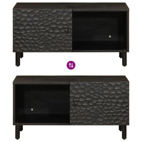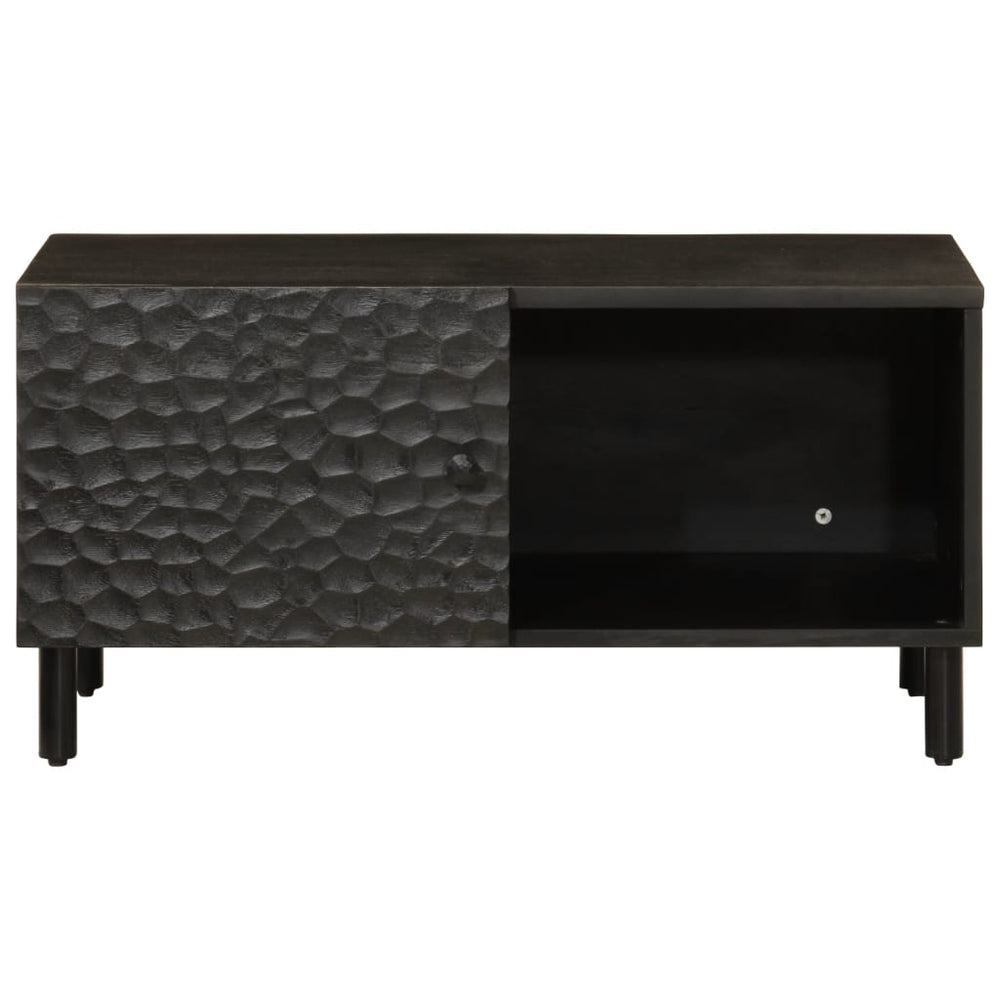 - Materiaal: massief mangohout met zwarte beits, ijzer en bewerkt hout