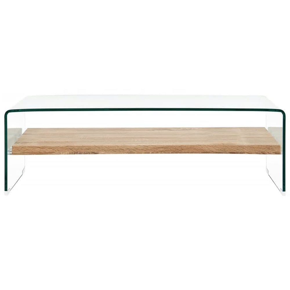 De salontafel is gemaakt van MDF en gehard veiligheidsglas dat veiliger en sterker is dan normaal glas. Dankzij het geïntegreerde schap helpt deze praktische salontafel om je leefruimte opgeruimd te houden omdat hij perfect is voor boeken, tijdschriften en verschillende andere kleine spullen die je binnen handbereik wilt houden. Bovendien maakt de stevige constructie de tafel buitengewoon duurzaam.