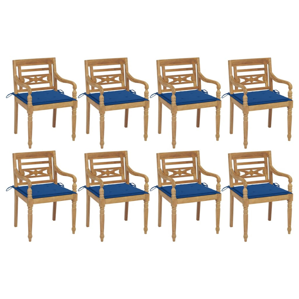Deze comfortabele en elegante houten Batavia stoelen met kussens zien er prachtig uit in de tuin of op het terras.
