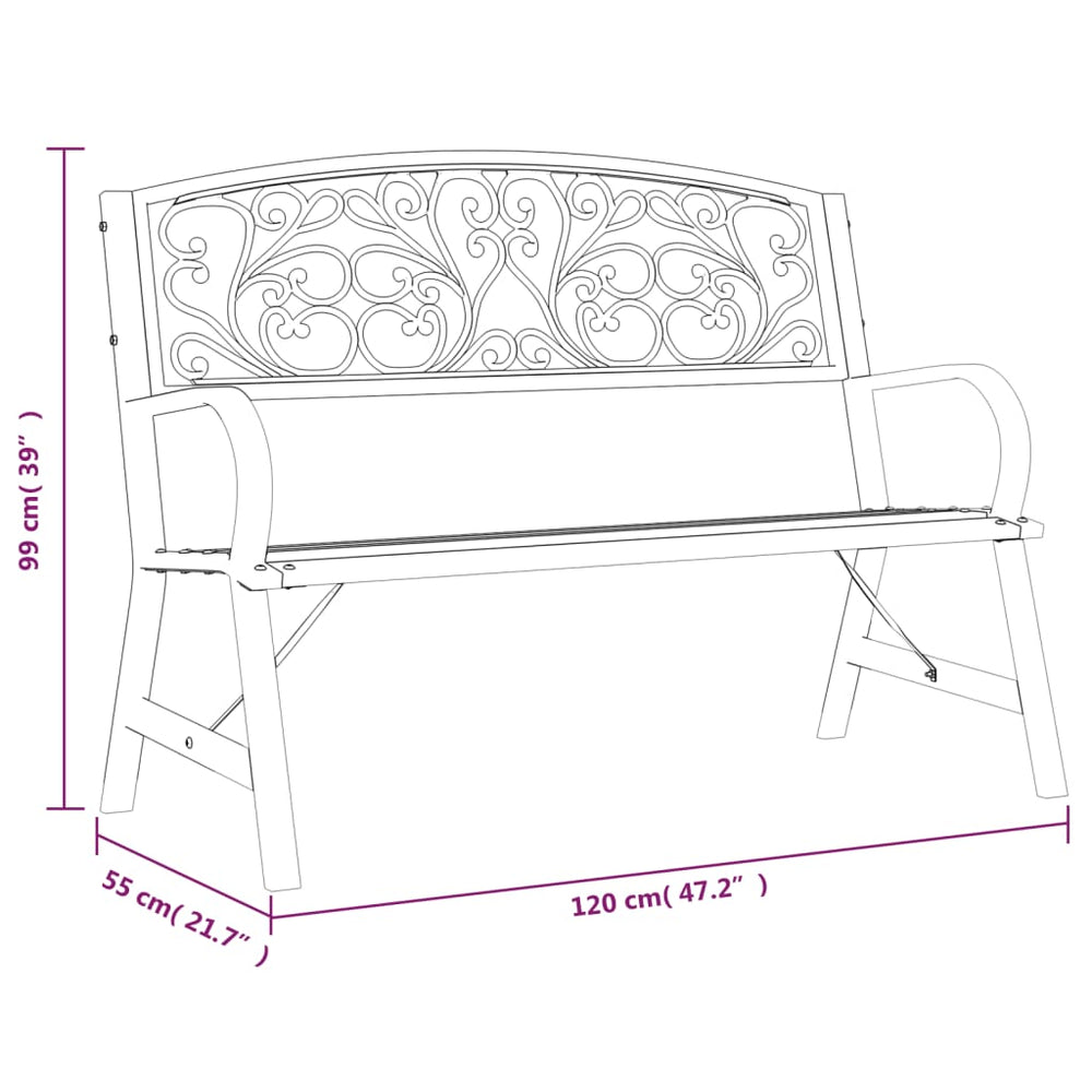 - Duurzaam materiaal: dankzij een massief houten zitting, een gietijzeren rugleuning en een stalen frame is de bank weerbestendig en zeer duurzaam.