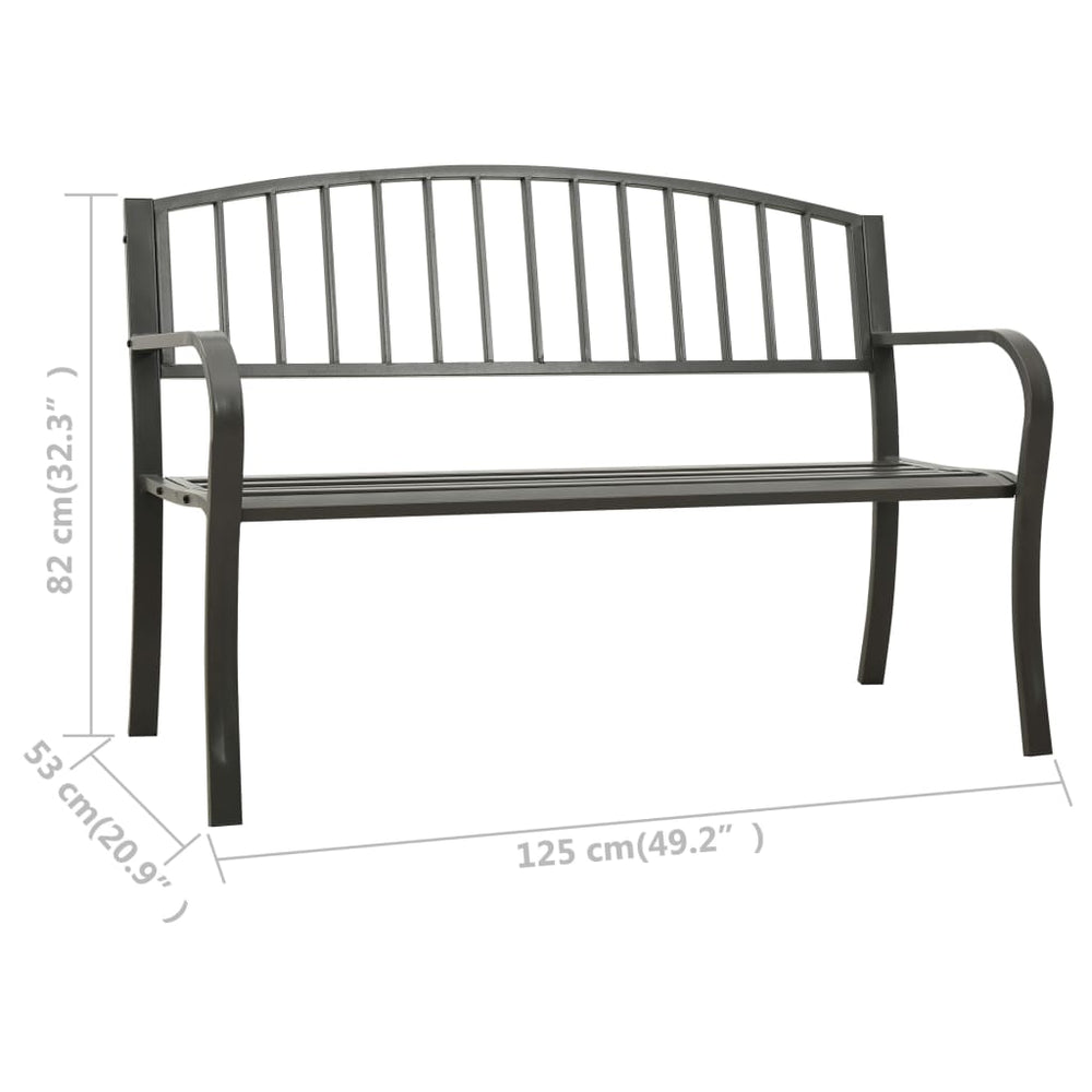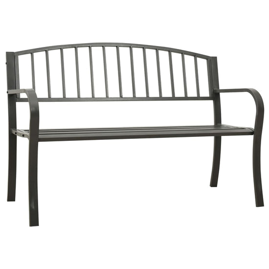 Deze terrasbank is gemaakt van gepoedercoat staal waardoor hij weerbestendig en zeer duurzaam is. Twee gebogen metalen armleuningen vormen de perfecte plek om je armen op te laten steunen.