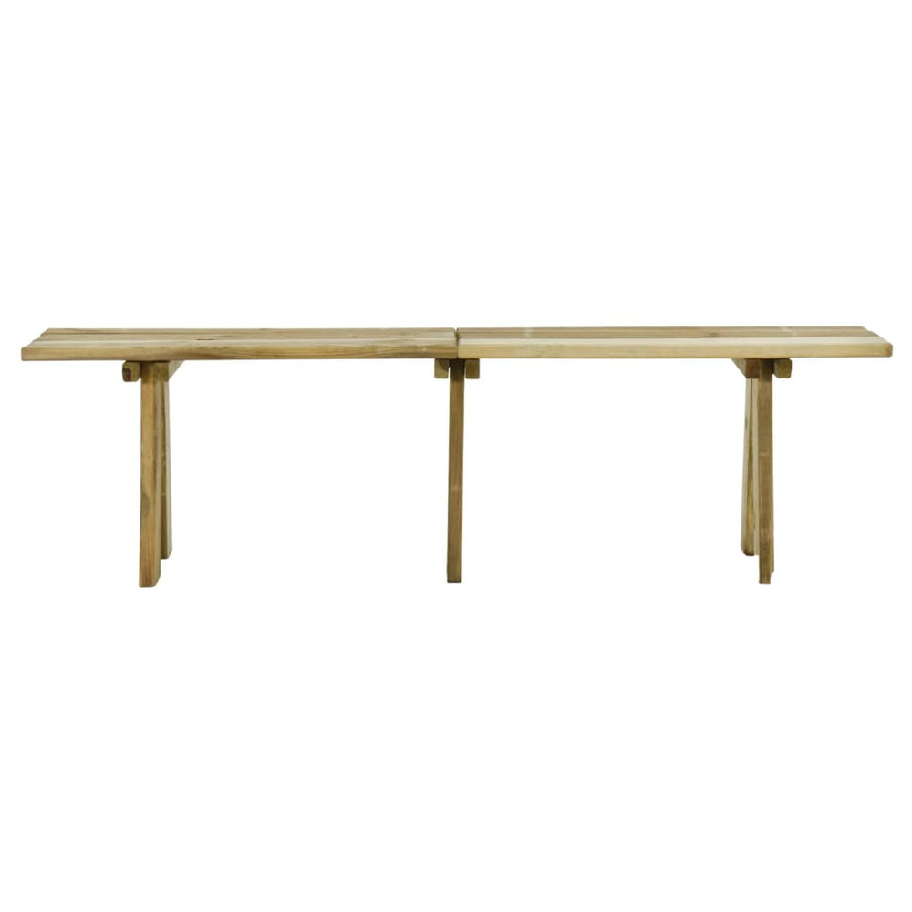 Hij is gemaakt van geïmpregneerd massief grenenhout, waardoor hij duurzaam en corrosiebestendig is. Hierdoor is het bankje geschikt voor buitengebruik. Op deze terrasbank geniet je zeker van je vrije tijd!