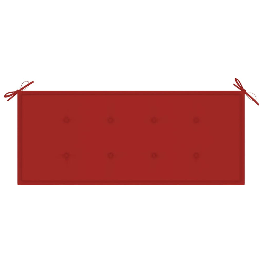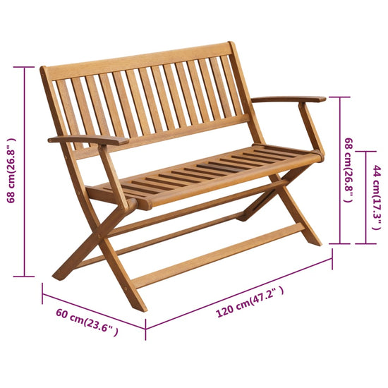Het tuinbankje is gemaakt van massief acaciahout waardoor het stevig en duurzaam is en geschikt is voor buitengebruik. De rugleuning en de armleuningen dragen bij aan het zitcomfort De houten tuinbank kan eenvoudig worden ingeklapt om ruimte te besparen wanneer hij niet wordt gebruikt. Verder biedt het inbegrepen kussen extra zitcomfort. Het is gemaakt van 100% polyester, dat waterdicht gemaakt is. Het kussen heeft 2 sets touwtjes om het stevig aan de bank te bevestigen.