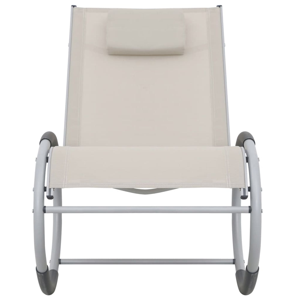 Het frame is gemaakt van stevig aluminium en de zitting en rugleuning zijn gemaakt van sterke textileen stof. De lounger is stabiel, erg duurzaam en weerbestendig. De tuinstoel heeft een kussen en een gebogen, ergonomisch ontwerp zodat je volledig kunt ontspannen in een comfortabele houding. De ovale basis zorgt niet alleen voor een aangename schommelervaring, maar voegt ook een beetje esthetiek toe aan de stoel.