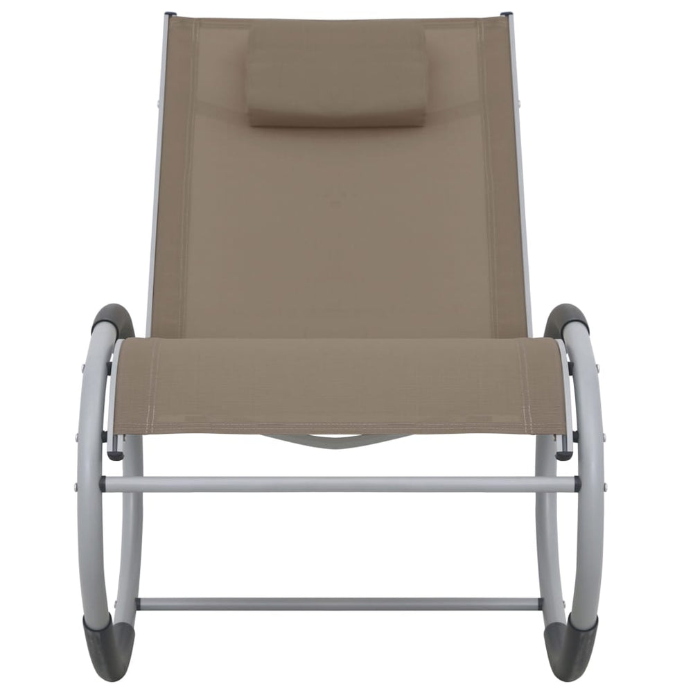 Het frame is gemaakt van stevig aluminium en de zitting en rugleuning zijn gemaakt van sterke textileen stof. De lounger is stabiel, erg duurzaam en weerbestendig. De tuinstoel heeft een kussen en een gebogen, ergonomisch ontwerp zodat je volledig kunt ontspannen in een comfortabele houding. De ovale basis zorgt niet alleen voor een aangename schommelervaring, maar voegt ook een beetje esthetiek toe aan de stoel.