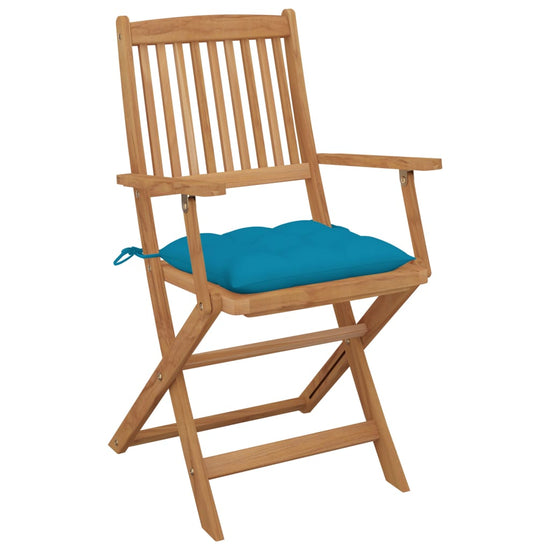 Deze massief acaciahouten inklapbare stoelen met kussens zijn perfect om op te ontspannen en in je tuin of op je terras van de zon te genieten.