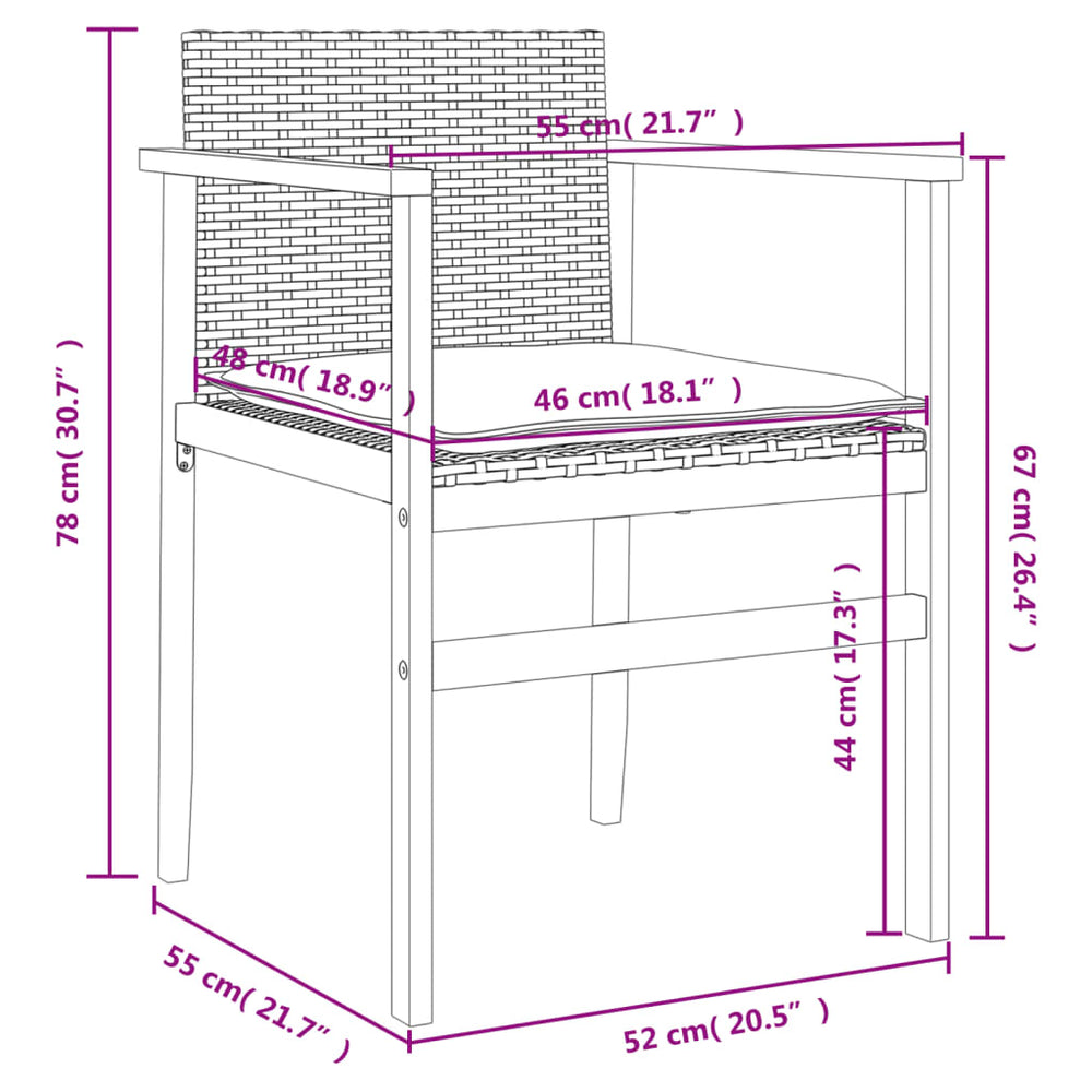 - Materiaal: PE-rattan, massief acaciahout met een natuurlijke olieafwerking en gepoedercoat staal
