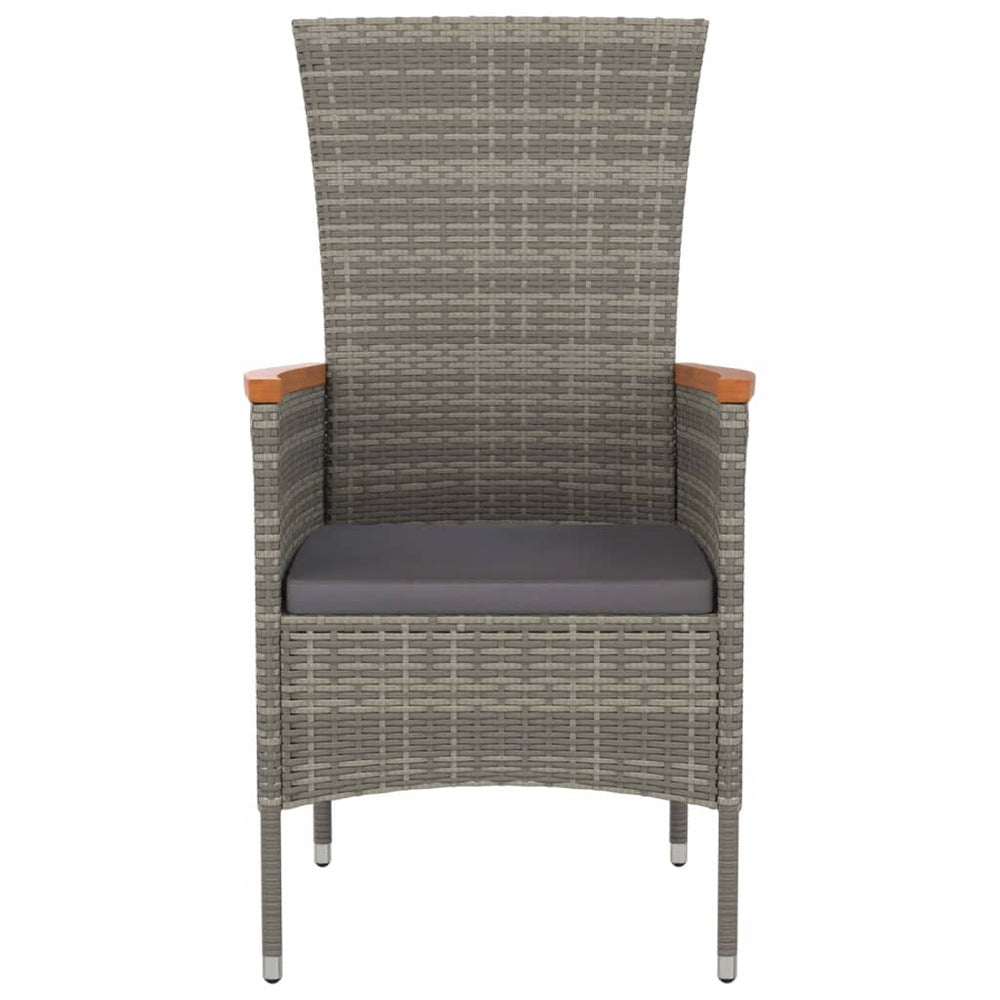 - Duurzaam materiaal: PE-rattan is duurzaam en weerbestendig, waardoor het perfect is voor buitengebruik. Bovendien is het lichtgewicht, gemakkelijk schoon te maken en bestand tegen vervaging en uv-schade. De armleuningen van massief acaciahout geven je tuin een rustieke charme.