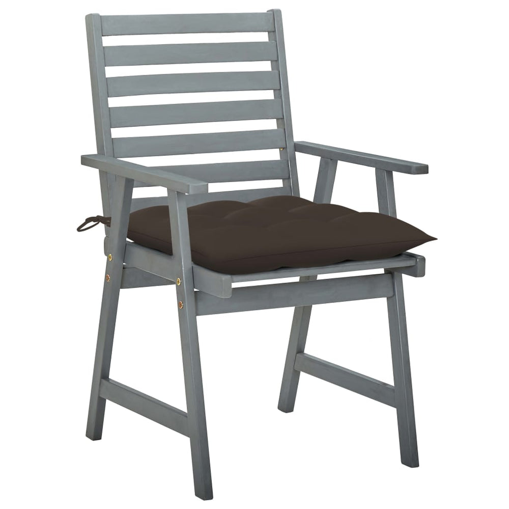 Deze moderne houten eetstoelenset met kussens voegt een vleugje natuurlijke stijl toe aan je tuin of terras. Deze houten stoelenset is een perfecte keuze als je buiten wilt eten.