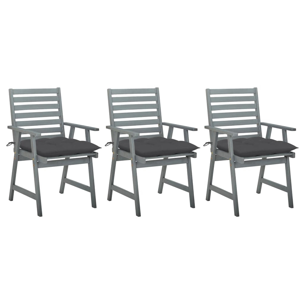 Deze moderne houten eetstoelenset met kussens voegt een vleugje natuurlijke stijl toe aan je tuin of terras. Deze houten stoelenset is een perfecte keuze als je buiten wilt eten.