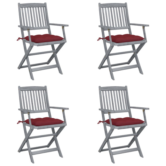Deze moderne houten stoelenset met kussens voegt een vleugje natuurlijke stijl toe aan je tuin, patio of terras. Deze klapstoelen zijn een goede keuze als je buiten wilt eten.