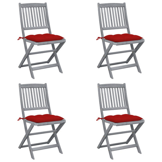 Deze moderne houten stoelenset met kussens voegt een vleugje natuurlijke stijl toe aan je tuin, patio of terras. Deze klapstoelen zijn een goede keuze als je buiten wilt eten.