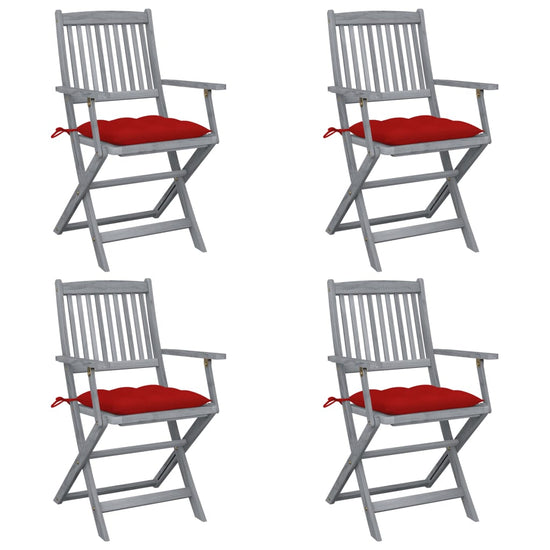 Deze moderne houten stoelenset met kussens voegt een vleugje natuurlijke stijl toe aan je tuin, patio of terras. Deze klapstoelen zijn een goede keuze als je buiten wilt eten.