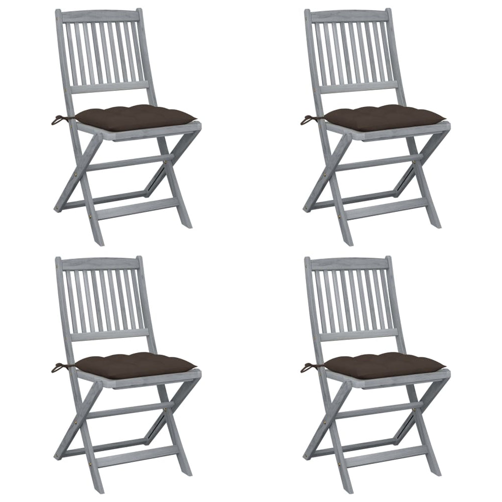 Deze moderne houten stoelenset met kussens voegt een vleugje natuurlijke stijl toe aan je tuin, patio of terras. Deze klapstoelen zijn een goede keuze als je buiten wilt eten.