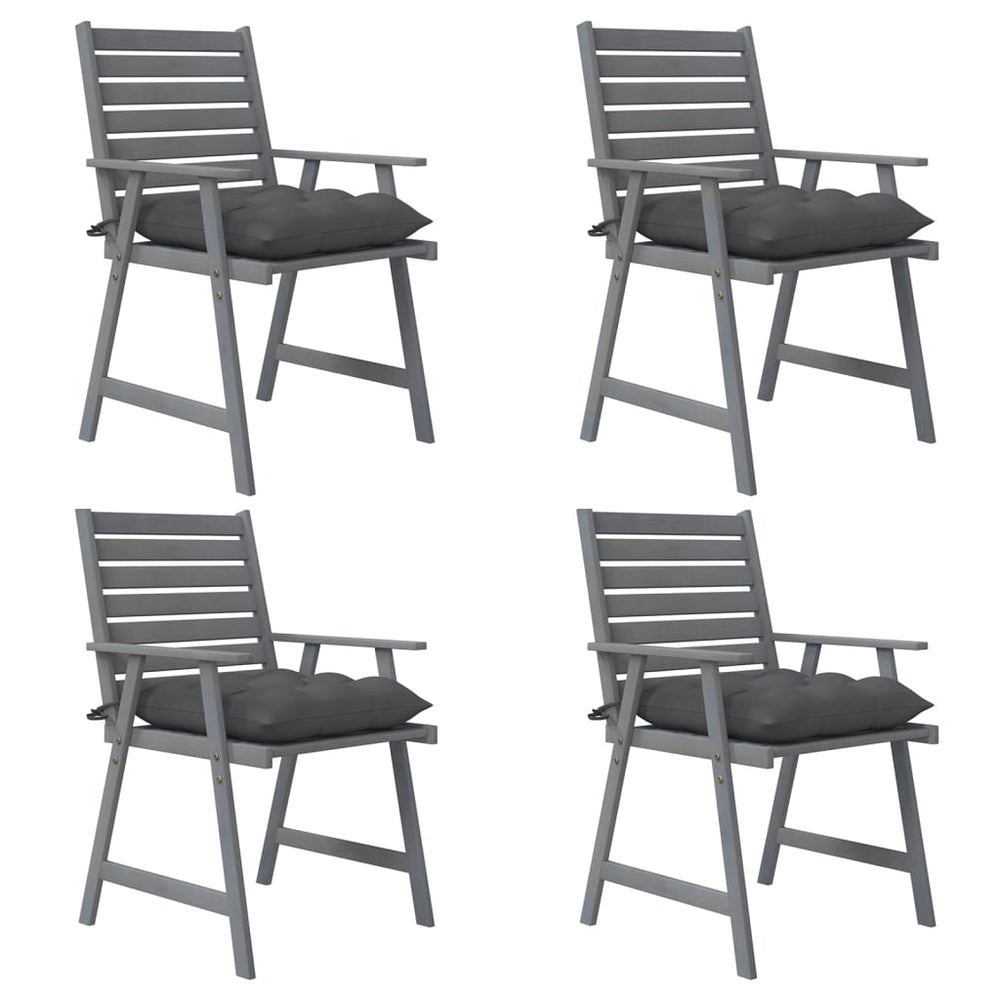 Deze houten eetstoelen voor buiten met kussens zijn een uitstekende keuze voor een diner in de tuin of op het terras.