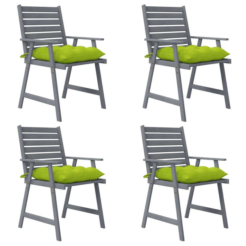 Deze houten eetstoelen voor buiten met kussens zijn een uitstekende keuze voor een diner in de tuin of op het terras.