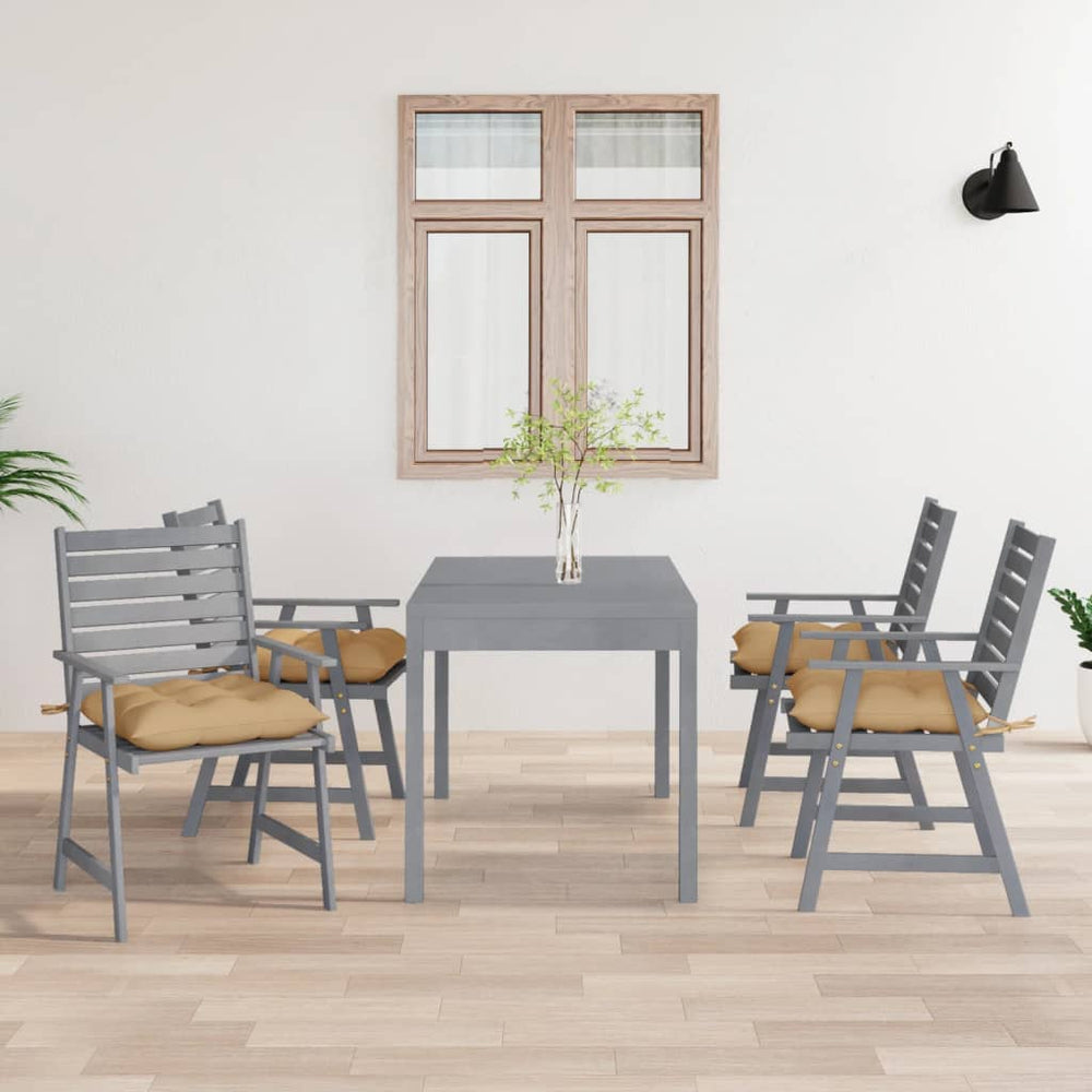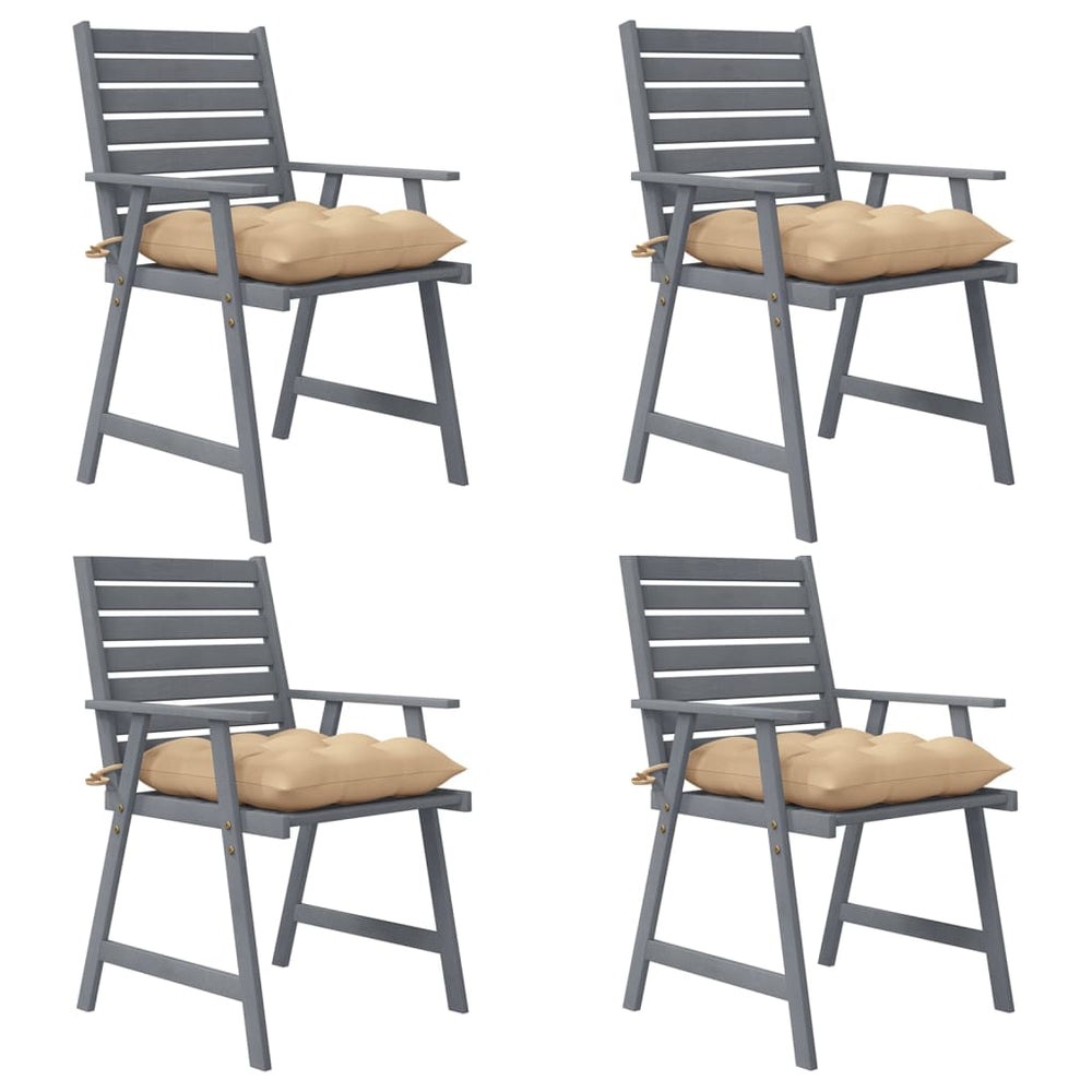Deze houten eetstoelen voor buiten met kussens zijn een uitstekende keuze voor een diner in de tuin of op het terras.