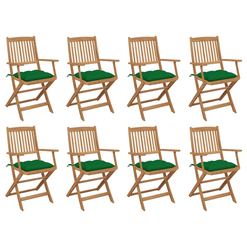 Deze eetstoelen zijn gemaakt van eersteklas acaciahout, een tropisch hardhout, dat weerbestendig en duurzaam is voor jarenlang gebruik. Het geoliede oppervlak is gemakkelijk schoon te maken met een vochtige doek. De stoelen kunnen worden ingeklapt om ruimte te besparen wanneer ze niet in gebruik zijn. Bovendien zorgen de meegeleverde kussens voor extra comfort. Elk kussen heeft 2 sets touwtjes om het stevig aan de stoel te bevestigen.