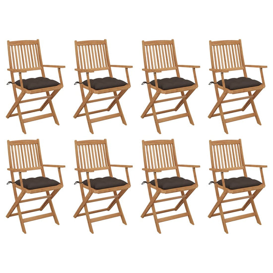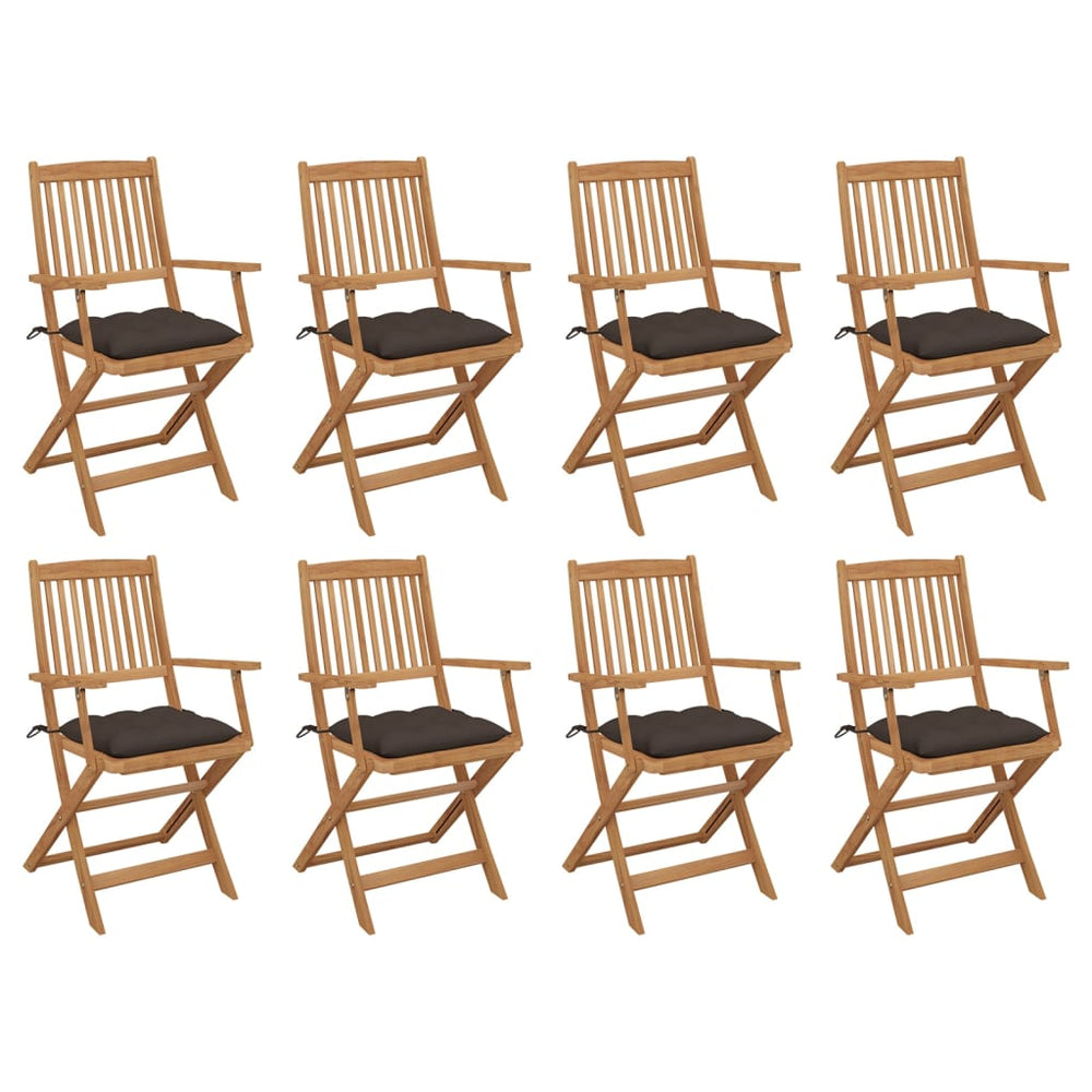 Deze eetstoelen zijn gemaakt van eersteklas acaciahout, een tropisch hardhout, dat weerbestendig en duurzaam is voor jarenlang gebruik. Het geoliede oppervlak is gemakkelijk schoon te maken met een vochtige doek. De stoelen kunnen worden ingeklapt om ruimte te besparen wanneer ze niet in gebruik zijn. Bovendien zorgen de meegeleverde kussens voor extra comfort. Elk kussen heeft 2 sets touwtjes om het stevig aan de stoel te bevestigen.