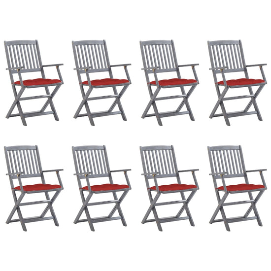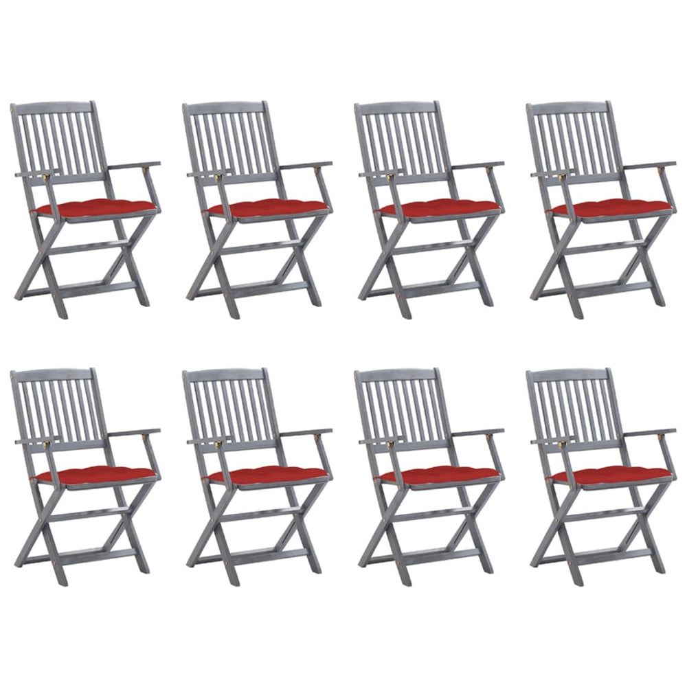 Deze moderne houten stoelenset met kussens voegt een vleugje natuurlijke stijl toe aan je tuin, patio of terras. Deze klapstoelen zijn een goede keuze als je buiten wilt eten.
