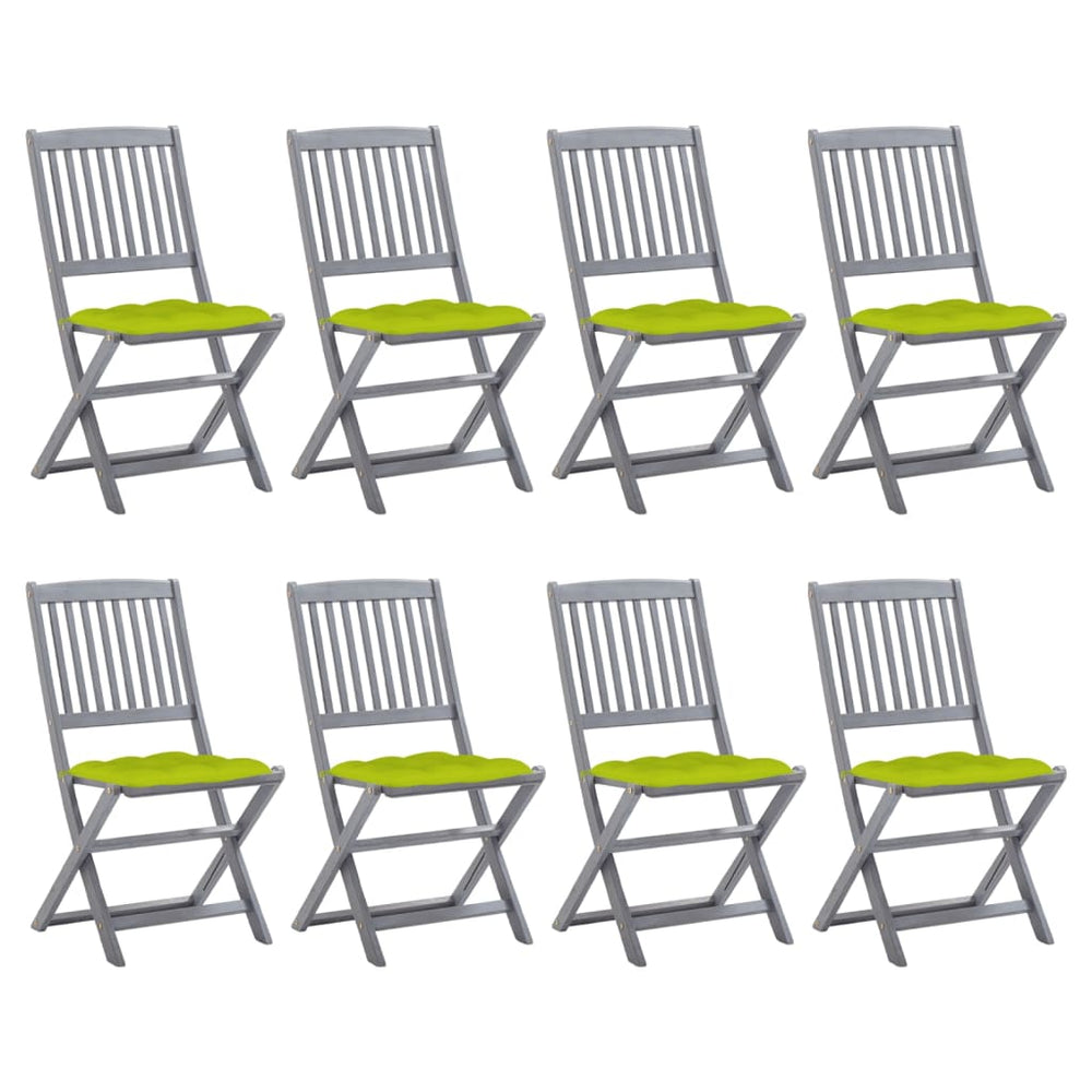 Deze moderne houten stoelenset met kussens voegt een vleugje natuurlijke stijl toe aan je tuin, patio of terras. Deze klapstoelen zijn een goede keuze als je buiten wilt eten.