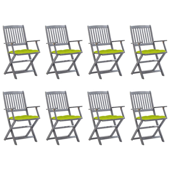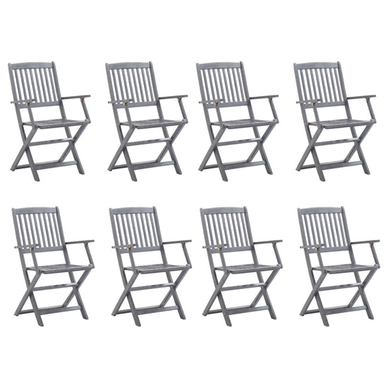 Deze moderne houten stoelenset met kussens voegt een vleugje natuurlijke stijl toe aan je tuin, patio of terras. Deze klapstoelen zijn een goede keuze als je buiten wilt eten.
