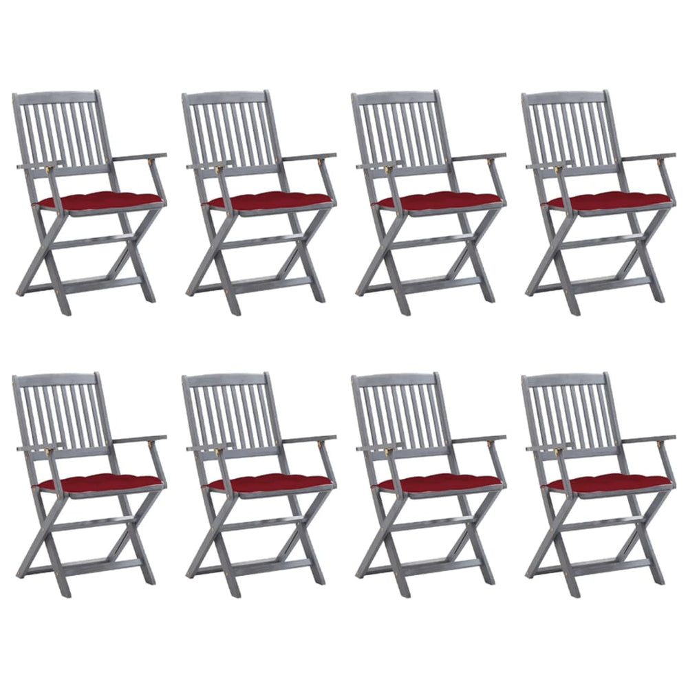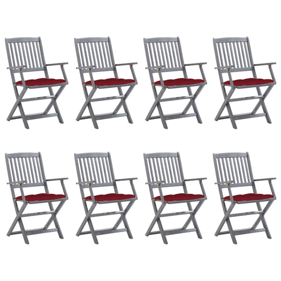 Deze moderne houten stoelenset met kussens voegt een vleugje natuurlijke stijl toe aan je tuin, patio of terras. Deze klapstoelen zijn een goede keuze als je buiten wilt eten.