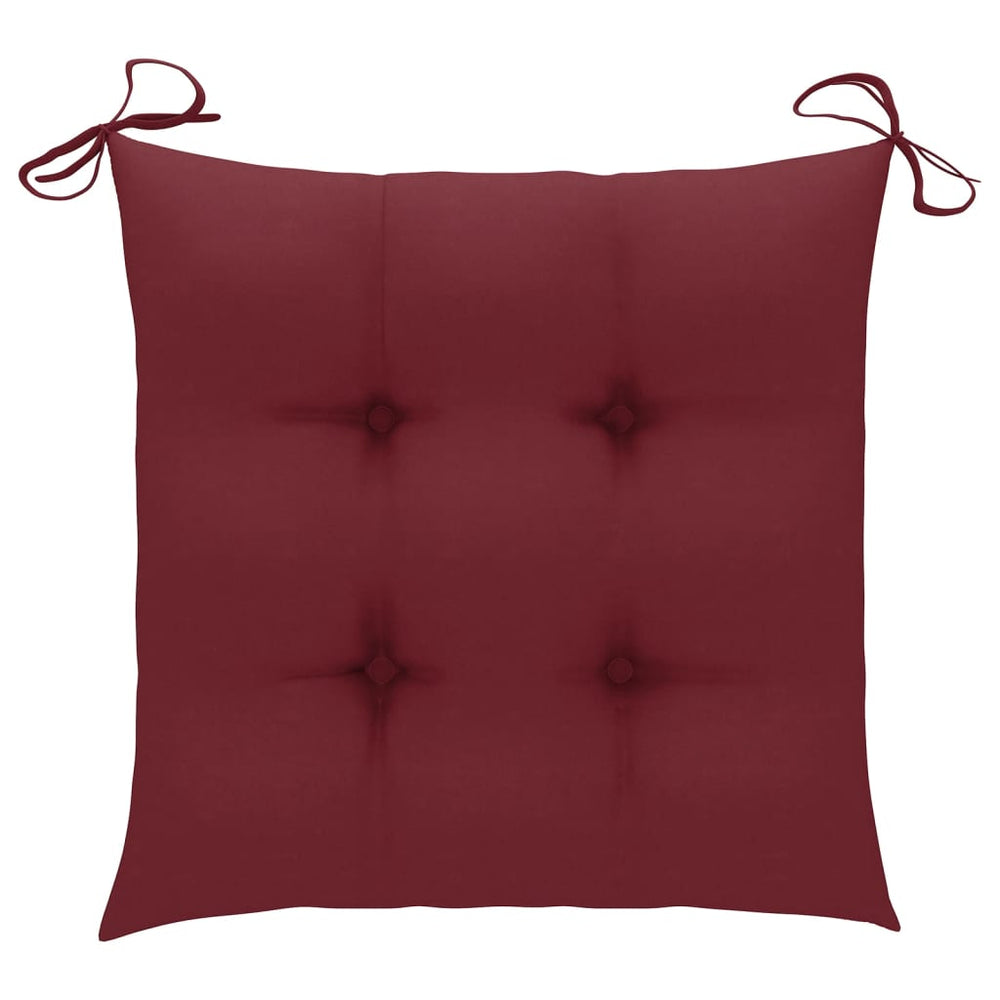 Deze teakhouten meubelset is gemaakt van extreem duurzaam hard teakhout dat gewaterd, in de oven gedroogd en vervolgens fijn geschuurd is om het een zeer glad uiterlijk te geven. Teakhout staat bekend om zijn uitzonderlijke kracht en weerbestendigheid, waardoor het veel geschikter is voor tuinmeubelen dan elke andere houtsoort. Teakhout is de perfecte keuze als je een duurzaam tuinmeubelstuk wilt aanschaffen. Dankzij het geschuurde oppervlak zijn de stoelen weerbestendig en gemakkelijk schoon te maken. Ze kunnen ingeklapt worden om opbergruimte te besparen als ze niet worden gebruikt. De inbegrepen kussens bieden extra comfort. Elk kussen heeft 2 sets touwtjes voor stevige bevestiging aan de stoel.