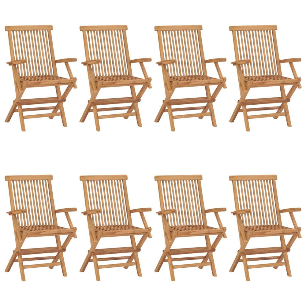 Deze houten tuinstoelenset bestaat uit 8 stoelen en is een fantastische toevoeging aan je tuin, terras of patio, om gezellig met je gezin of vrienden te praten en van het weer te genieten.