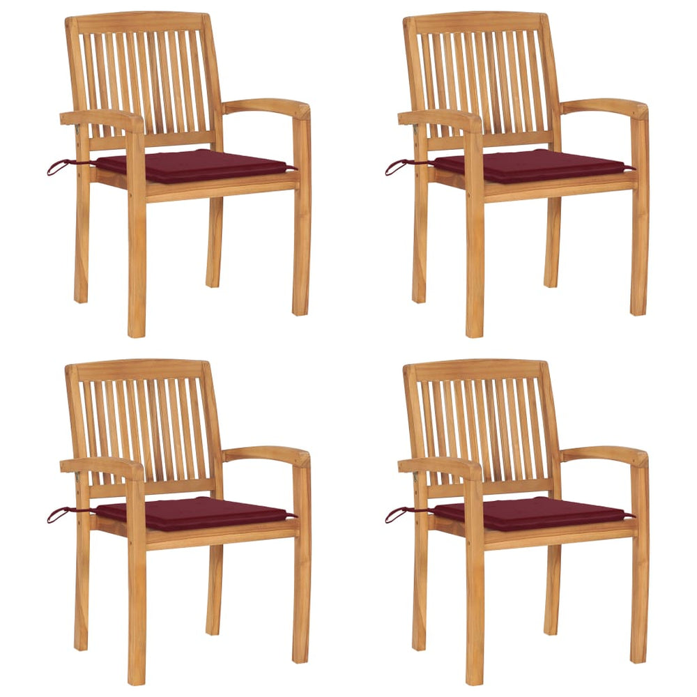 Voeg een vleugje rustieke charme toe aan je eetkamer, tuin of terras met deze stapelbare houten tuinstoelen met kussens! De stoelenset heeft een gelat en elegant ontwerp en tilt je binnen- of buitenruimte naar een hoger niveau.
