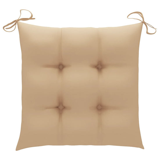 Deze teakhouten meubelset is gemaakt van extreem duurzaam hard teakhout en is gewaterd, in de oven gedroogd en fijn geschuurd om het een zeer gladde uitstraling te geven. Teakhout staat bekend om zijn uitzonderlijke kracht en weerbestendigheid, waardoor het veel geschikter is voor tuinmeubelen dan elke andere houtsoort. Teakhout is de perfecte keuze als je een duurzaam tuinmeubel wilt aanschaffen. Het is gemakkelijk te onderhouden en schoon te maken met een vochtige doek. Daarnaast kunnen deze eetkamerstoelen opgestapeld worden om opslagruimte te besparen wanneer ze niet wordt gebruikt. De inbegrepen kussens bieden extra comfort. Elk kussen heeft 2 sets touwtjes om het aan de stoel te bevestigen.